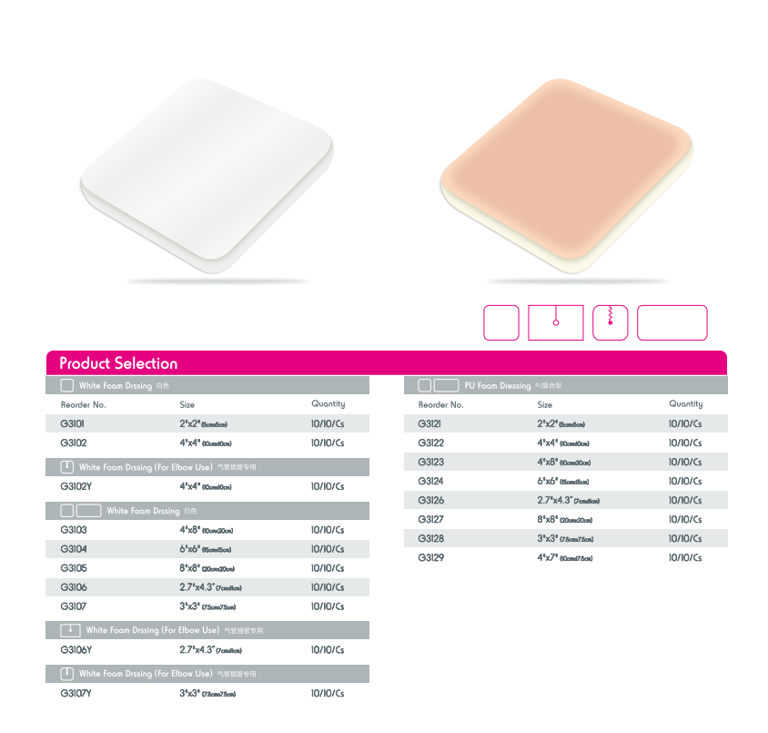फोम ड्रेसिंगहरू नरम, प्याडेड घाउ हेरचाह उत्पादनहरू हुन् जुन शोषक, छिद्रपूर्ण सामग्रीबाट बनाइन्छ। तिनीहरूको मुख्य शक्ति घाउको ओछ्यानलाई राम्रोसँग ओसिलो राख्नको लागि मध्यमदेखि भारी घाउको निकासको व्यवस्थापनमा निहित छ। नरम फोमले कुशन र सुरक्षा प्रदान गर्दछ, र तिनीहरूको गैर-स्टिक सतहले दुखाइ-मुक्त हटाउन अनुमति दिन्छ।